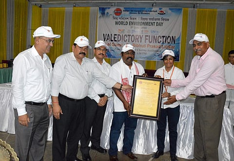 DIGBOI, June 6: The Indian Oil fraternity and the local populace of Digboi town came together to observe World Environment Day, 2018 with zeal. Employees showcased their concern for the cause based on the theme ‘Beat Plastic Pollution’ and pledged to protect the Earth’s biodiversity. Based on the theme, nearly 750 school children covering 32 schools in and around Digboi town came together at the Paragdhar Chaliha auditorium to translate their understanding of the theme through colours and artistic expressions. The All Assam State-level Quiz with prize money of Rs 48,000 attracted enthusiastic participation from the youth. A hoarding made with environment-friendly bamboo and minimized use of flex material was installed at an important public crossroad. This hoarding displayed the significant theme of World Environment Day, 2018. The activities for the day included tree plantation by the dignitaries at the Fire Training ground followed by release of fish fingerlings in the water body at Digboi Centenary Park. A cleanliness drive under Swachh Bharat Abhiyan too was undertaken at AOD New Market.