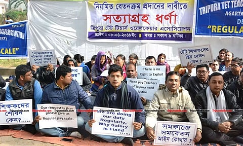 The first batch of TET qualified teachers were appointed in December last and were given a monthly fixed pay of Rs 7,970 only. The aggrieved teachers said Tripura is the lone exception where TET qualified teachers were appointed in a fixed pay.