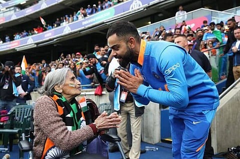 As soon as the match finishes and India players come out victorious, Patel could be seen mingling well with the star players of the team Virat Kohli and Rohit Sharma. Both Virat and Rohit sought blessings and pats from the old lady. What is more, she did not forget to leave pecks of love and blessing on the cheeks of the duo.