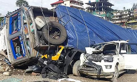 Itanagar Simi informed that a cement loaded Tata truck bearing registration No- AS 12 E 7493 was coming from Banderdewa towards Gopur Tinali for unloading meet with an accident. During the accident the truck hit a three whealer autorskchaw bearing registration AR 02 A 2758 and then to a Scorpio bearing registration No- AR 01 L 2393, while negotiating the turning downside road. Both the Autprickshaw and Scorpio were coming from opposite direction. He said.