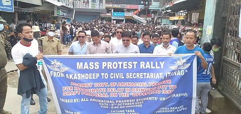 ITANAGAR: The All Arunachal Pradesh Students' Union (AAPSU) on Tuesday staged a statewide protest rally against the State government for inordinate delay in bringing out the draft proposal on the 'offspring' issue. The protest rally took place from Akashdeep to IG Park here