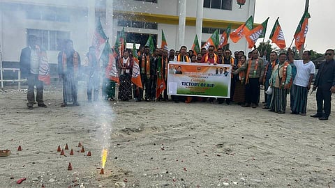 BJP ST Morcha Arunachal Pradesh, under the leadership of State ST Morcha President Kame Yangfo, along with State Executive Members, also participated in the celebrations, marking the momentous occasion with enthusiasm. This resounding victory reflects the unwavering support of the people and the visionary leadership of Hon'ble Prime Minister Narendra Modi. The BJP’s steadfast commitment to development, nationalism, and good governance continues to resonate across the nation.