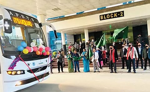 ITANAGAR: Chief Minister Pema Khandu, along with Minister for Transport Nakap Nalo, flagged off the new super specialty Volvo Bus service here at Secretariat on Monday.
