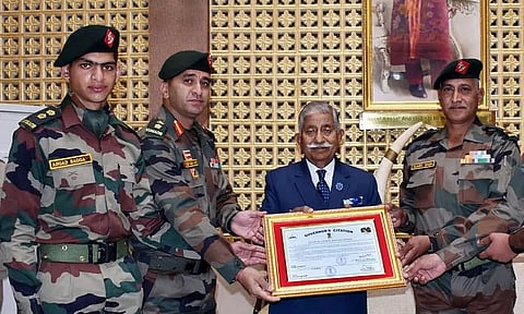 For the 25th Madras regiment, Commanding Officer Col Saurabh Kumar Mishra, Subedar Major R Jay Kumar and junior-most sepoy Manu received the citation, Raj Bhawan sources informed here.