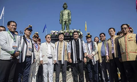 ITANAGAR: As a befitting tribute to the founder of the present day Arunachal Pradesh's capital city Itanagar, Chief Minister Pema Khandu on Friday unveiled the statue of Nabam Runghi at the Inter-State Bus Terminal at Lekhi, near here.