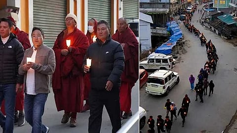 TAWANG: On Sunday, Tawang saw a candlelight march that drew thousands of lamas, students, and local residents to show solidarity with the victims of the recent earthquake in Tibet. The earthquake on January 7 had killed at least 126 people and injured more than 100 others, and tremors were felt in Nepal, Bhutan, and parts of northern India.