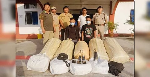 Police said that acting on actionable input, movement of two drug peddlers was tracked along the jungles in Lipakphu. Subsequently, a team from Balemu police station successfully apprehended the two individuals, who were found carrying five gunny bags full of suspected cannabis.