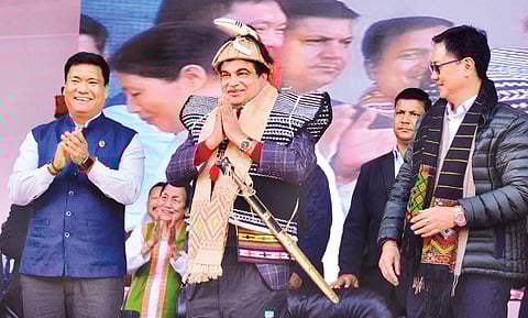 ZIRO (Arunachal): Taking a dig at the Congress, Union minister Nitin Gadkari has said that development in the Northeast was stagnant for the past decades due to lack of right vision. The minister said this while laying foundation stones of NH projects worth Rs 9,533 crore here on Thursday.