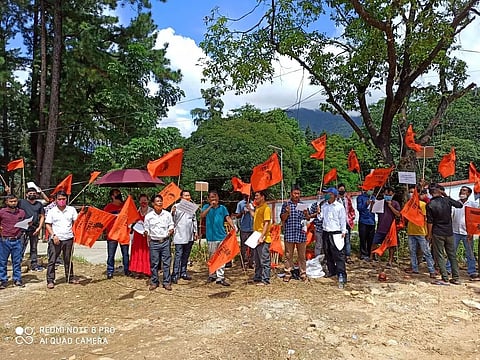 ITANAGAR: The State Unit of BMS (Bhartiya Mazdoor Sangh) staged peaceful protest against the steepest-ever hike in petrol price and other essential commodities at Tennis Court near Indira Gandhi Park here.