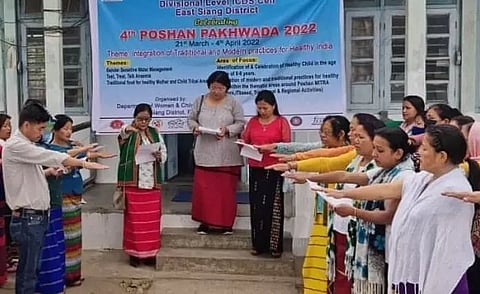 Chief Councillor, Pasighat Municipal Corporation (PMC), Okiyam Moyong Borang, administered the Poshan Pledge as the chief guest. The participant were CDPOs of four ICDS Project, Supervisors, Field Staff, AWWs, AWHs, ASHA and Staff of ICDS.