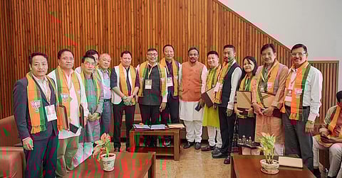 Itanagar: A seven-member team of BJP-Arunachal Pradesh unit led by its president Biyuram Waghe attended the national level meeting on Sangthan Parv in New Delhi recently. During the meeting, the team was honoured by national president J P Nadda for becoming the first state to reach the target assigned by the central office with 98 per cent.