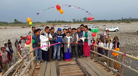 The approximately 100 meter-long log bridge will connect Anpum to Loklung, Keba, Banggo and Paglam, reducing the travel time.