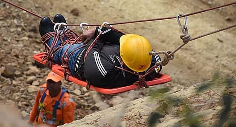 The NDRF also displayed the processes followed after a disaster and the rescue efforts; methodical search-and-rescue operations; evacuation of victims; the types of equipment and its use; use of canine teams, rescue in multi-storied buildings, rope rescue etc., were demonstrated on the day. The fire brigade team of the district demonstrated the process of extinguishing fires during fire accidents.