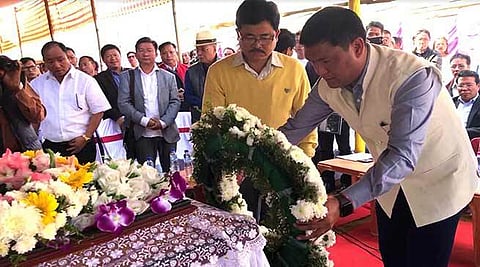 Khandu along with cabinet ministers and MLAs laid wreaths and paid obeisance to the mortal remains of the former agency council member.