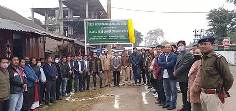 ROING: The plastic-free campaign in the Lower Dibang Valley (LDV) district was launched by Deputy Commissioner K.N. Damo by unveiling a signboard with the message 'Keep the mountain clean and green' as part of the campaign at Shantipur Check gate here on Monday.