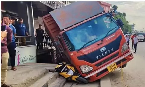 The incident took place near the Zero-point in Itanagar. As per reports, the truck had broken down in the middle of the road and had suddenly stopped moving. In order to move the truck, another truck was called in. The second truck set the first truck in motion by pulling it with the help of a string. However, the string proved to be too weak to pull the second struck. This caused the first struck to slump over the vehicles that had been parked in the area, damaging them in the process.