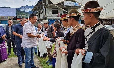 MECHUKA: Arunachal Pradesh Legislative Assembly Speaker Pasang Dorjee Sona was accorded a warm reception at Mechuka on Saturday on his arrival from Itanagar. After assuming the Legislative Assembly Speaker post, Sona is on his first official visit to his home constituency. He is representing Mechuka (ST) Assembly Constituency for third consecutive terms.