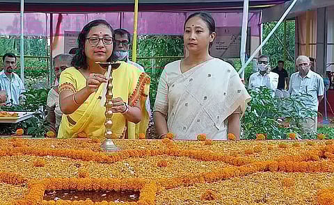 MANGALDAI: Synchronizing with the nationwide celebration of the 152nd Gandhi Jayanti, a good number of citizens, women activists and students joined the celebration organized by Darrang district administration at Gandhi Smriti Udyan on Saturday. Subhalaxmi Deka marked the beginning of the celebration by traditionally lighting a lamp and offering floral tribute at the memorial where the ashes of Mahanta Gandhi was kept in 1948. She also inaugurated the function.