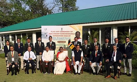 The Mount Kanchenjunga Expedition 2023 of the Assam Mountaineering Association was officially flagged off by the president of India, Droupadi Murmu. She had handed over an ice axe baton symbolising the start of the expedition. She also wished her best to the seven-member expedition team to concur the mountain.