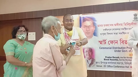 TINSUKIA: As many as 27 gaon burhas of Chabua LAC under Tinsukia revenue circle received smartphones at the conference hall of the DC's office in Tinsukia on Friday in presence of MP of Lakhimpur constituency, Pradan Boruah, MLA of Chabua LAC, Binod Hazarika, Deputy Commissioner of Tinsukia, Bhaskar Pegu, Palash Ahom, ADC, and Dr Sanjib Phukan, Circle Officer of Tinsukia Revenue Circle. The programme was held under Revenue and Disaster Management Department.
