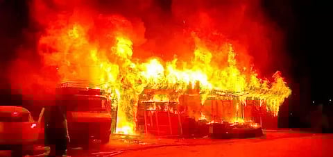 BARPETA: Three shops were burnt to ashes in a devastating fire at Bahari Bazar on Wednesday. The fire gutted three shops - a jewellery shop, a pharmacy and a hardware store - near the Punjab National Bank. SDRF, fire brigade and police somehow managed to douse the flames.