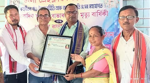 Earlier, family members of Dhaneswar Rabha, senior journalist Dhiren Mahalia and Diganta Sarma and Rashmi Rekha Rabha of All Rabha Women Council offered floral tribute on the portrait of Dhaneswar Rabha. The felicitation function was presided over by president of Udalguri Zila Sahitya Sabha and media person Gauri Shankar Deka
