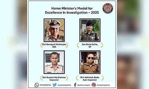 Lauding their achievement, the Assam Police via its official Twitter handle posted, "Heartiest Congratulations to Sh. Devojyoti Mukherjee, DIG, Smt. Rosie Kalita, SP, Sh. Rustam Raj Brahma, Inspector and Sh. Abhishek Bodo, SI (UB) for being awarded the prestigious Union Home Minister's Medal for Excellence in Investigation, 2020."