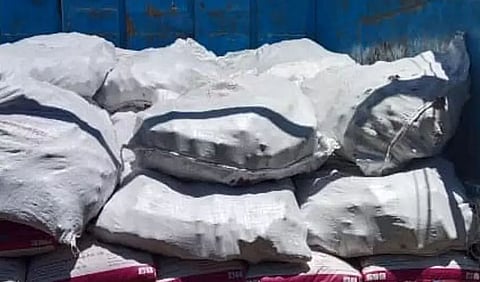 The seized 4,874 bottles of 'Codeine phospate' cough syrup were concealed under rice bags.