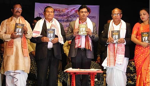 The agenda of the event began with the unfurling of the Natya Sanmilan flag by Swarnapeeth Mandal president Hemchandra Baruah and organizing committee flag by president Purnananda Dutta. Simultaneously, 57 prominent personalities unfurled 57 flags in connection with the event. About 150 women artistes dressed in traditional Muga attires performed the flag hoisting song of the organization. The Smriti tarpan was done by Swarnapeeth Mandal secretary Hiranya Hazarika and Lakhimpur district unit secretary Jayanta Saikia. Speaking on the occasion, president Hemchandra Baruah asserted that the session of the organization was crucial from various aspects.