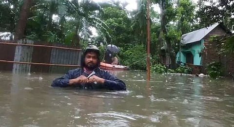 BARPETA: The rising water of the Brahmaputra, Beki, Nakhanda, Marachawlkhowa, Bhelengi, Pahumara and Kaldiya rivers has flooded most of the villages of the district. The flood situation in Barpeta district turned grim following heavy rainfall.