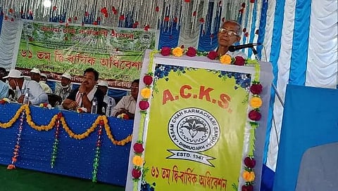 The open session chaired by Baikuntha Kumar Gohain, was addressed by Rishav Kalita, central secretary of Tingrai branch, Ratul Sarma, central treasurer, assistant labour commissioner Konpai Das and BaikunthaSarma, among others. Renowned educationist Abdul Rauf as chief speaker narrated the history of ACKS. A 9-member executive committee was formed with MoniramGogoi and Jai Chandra Saikia as president and secretary respectively. The resolutions adopted in the meeting were fixation of employees' salary on the basis of land holding having area of less than 250 acres and above. The meeting also resolved to strengthen the infrastructure of the garden.