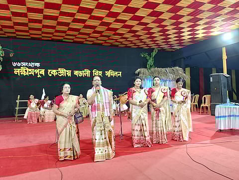 LAKHIMPUR: The 66th celebration of Rongali Bihu by Lakhimpur Kendriya Raingali Bihu Sanmilan has been underway in a festive environment at North Lakhimpur Boys’ Government HS School playground since Tuesday. During the past three days, the five-day-long event has witnessed a big number of cultural enthusiasts along with common people of Lakhimpur, irrespective of caste and creed, language and religion which has disseminated the message of communal harmony, integration and solidarity.
