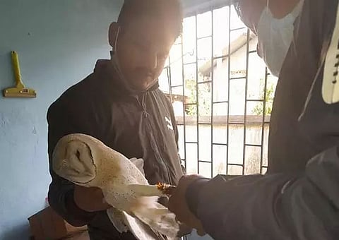 DHEMAJI: Two youths from Dhemaji have shown exemplary passion and love for wildlife, when they made an all-out effort to save the life of an injured and weak Barn Owl that they had found in their neighbourhood on the night of February 1. As they were clueless on how to save the life of the injured bird found that night, one of the youths, Bidyut Bikash Dutta called up the Secretary General and the CEO of Aaranyak, Dr Bibhab Kumar Talukdar here and described the condition of the injured bird and sought advice on how to save it given that the local veterinary hospital would open only next day morning.