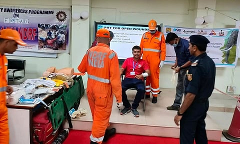 The NDRF resource team detailed the participants through practical sessions on patient assessment, soft tissue injuries, skull, spine and chest injuries, lifting and moving patients, basic life support (BLS), and cardiopulmonary Resuscitation (CPR), stated a press release.