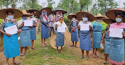 DEMOW: Under the patronage of AASAA, Demow Regional Committee, protest was staged in tea estates under Thowra constituency on Thursday. The protest was against the State Cabinet's decision to extend working hours of labourers from 8 hours to 12 hours. Lalit Tanti, secretary of AASAA, Demow Regional Committee, and other AASAA leaders took part in the protest.