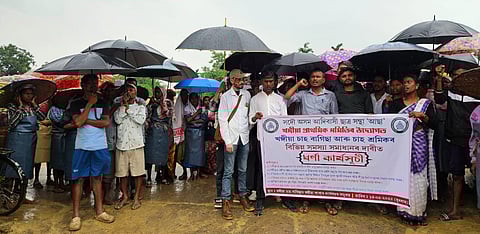 DEMOW: Under the patronage of All Adivasi Students’ Association of Assam (AASAA), Khongia Unit Committee, a demonstration programme was held in front of Khongia Tea Estate, Khongia Branch Office on Wednesday in support of their various demands. Later, AASAA, Khongia Unit Committee had submitted a memorandum to the Manager of Khongia Tea Estate. In the memorandum, they have demanded solutions to various problems of tea labourers. Provision of emergency ambulances in Khongia and Laojan Branch has been demanded. They demand arrangement for the appointment of doctors and nurses in the Khongia Branch Hospital of Khongia Tea Estate.