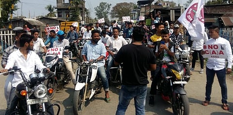 DOOMDOOMA: A bike rally against Citizenship Amendment Act (CAA) was brought out by the All Assam Students’ Union (AASU), Doomdooma Regional Committee at Doomdooma from Tapoban to Rupaisiding on Monday. The AASU activists shouted slogans against CAA and demanded the repeal of the ‘communal’ Act in order to safeguard the social fabric of the country. In a statement, president Uttam Baruah and secretary Pratim Neog said that although the agitation programme had been relaxed in view of various examinations, it would be intensified soon.
