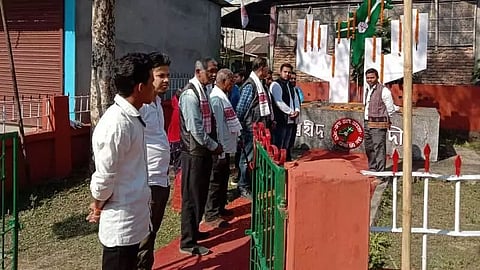 LAKHIMPUR: Along with the other parts of the State, the Lakhimpur district unit of All Assam Students' Union (AASU) observed Swahid Divas on Thursday to commemorate the martyrs of the Assam Anti-Foreigners Movement. Notably, on this very day in 1979 at Barpeta, Khargeswar Talukdar, the 22-year-old general secretary of Barpeta AASU unit, was beaten to death and thrown into a ditch next to the highway at Bhabanipur by security personnel while leading a protest programme. Khargeswar Talukdar was honoured as the first martyr of the Assam Movement.