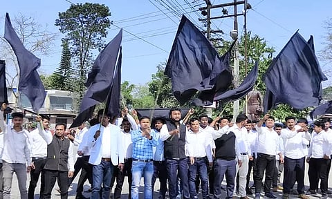 On the other hand, the activists of Lakhimpur district AASU also took to the streets by raising black flags to oppose the Prime Minister's visit to the State.