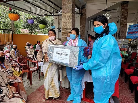JORHAT: The Air Force Wives Welfare Association (AFWWA) of Air Force Station, Jorhat on Saturday organized a donation camp at Sarothi Old Age Home in Jorhat, in association with Jorhat district administration. Parthana Jha, chairperson of Air Force Wives Welfare Association, Flying Officer Shilpa Verma, Warrant officer R K Singh and others were present in the programme and distributed eatables, toiletries, adult diapers, clothes and other essential commodities to the inmates.