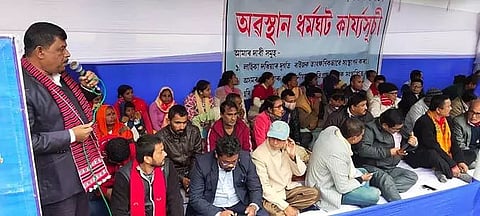 In support of the three-fold demands, the political party initiated a 3-hour long sit-in in front of the Deputy Commissioner's office. The protesters held a protest meeting in the protest venue. Attending the protest programme, AJP central committee vice-president Haren Chutia, organizing secretary Krishna Das and other leaders became vocal against the State Government regarding the aforementioned issues and called upon the government to resolve the sensitive issues in the real sense without sponsoring politics for the sake of politics.