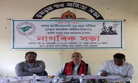 DOOMDOOMA: Asom Jatiyatabadi Yuba-Chatra Parishad (AJYCP), Doomdooma Anchalik Committee organized a citizens' meet at Doomdooma Sakha Xahitya Xabha Bhavan on Saturday to discuss various problems of the region. The meeting adopted a resolution to press the government to fulfill the long-standing demand of declaring Doomdooma as subdivision.