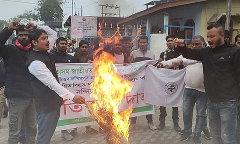 Regarding the issue, the members of the North Lakhimpur regional unit of the organization, led by president Manas Pratim Saikia and general secretary Bimala Prashad Das, burnt the effigy of State Power Minister Nandita Garlosa in front of the Electrical Subdivisional Office, located in North Lakhimpur town.