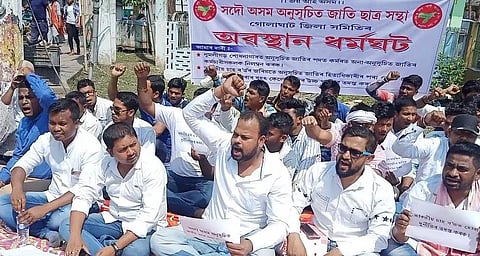 GOLAGHAT: The All Assam Scheduled Caste Students’ Union (AASCSU) Golaghat district committee staged protest near the Deputy Commissioner’s office on Monday and submitted a memorandum to the DC demanding initiative against the employees who had got job in Numaligarh Refinery Limited (NRL) by submitting fake SC certificates.