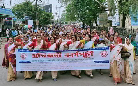 LAKHIMPUR: Anganwadi workers and assistants rocked North Lakhimpur town on Saturday with a massive protest programme against the alleged conspiracy hatched to close 62,153 Anganwadi centres of the State on the basis of the new National Education Policy.