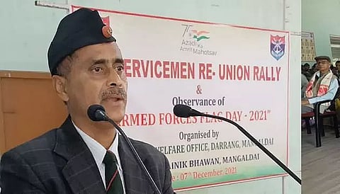 MANGALDAI: "Since 1949, December 7 has been observed as the Armed Forces Flag Day throughout the country to honour the martyrs and the men in uniform who valiantly fought & continue to fight on our borders to safeguard the country's honour. Soldiers are one of the greatest assets of any country. They are the guardians of the nation and protect its citizens at all costs. To fulfil their duties, soldiers have sacrificed a lot of things in their lives. The country is forever indebted to these gallant heroes who lay down their lives in the service towards the motherland," said Welfare Officer of Zila Sainik Welfare Board, Darrang Colonel (retired) Padma Lochan Barman while taking part in a function to mark the 'Armed Forces Flag Day' organized at Sainik Bhavan here in Mangaldai on Tuesday.