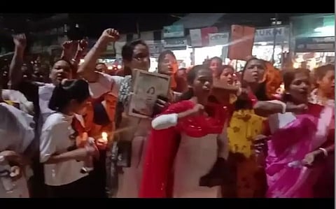 DOOMDOOMA: A total of hundred women belonging to Asam Chah Janajati Mahila Samiti, Doomdooma Sakha Samiti took out a candle light procession on Thursday in protest against Manipur incident. They marched towards Doomdooma along NH 37 from Hansara Chariali and thereafter, held a protest meeting at Gandhi Chowk in the heart of the Doomdooma town. They demanded justice for the victims of Manipur and criticized the inaction of the government in containing the violence.
