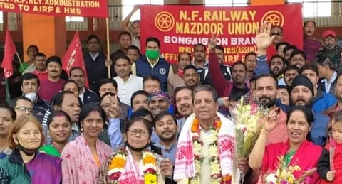 The trade union leader was given warm welcome by the cadres of NFRMU Bongaigaon, New Bongaigaon Running, New Bongaigaon BG and New Bongaigaon Workshop branch at New Bongaigaon Railway Station. After that a bike rally followed him from New Bongaigaon to his home.