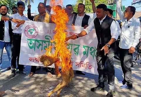 In this connection, the activists of the organization, led by central committee chief secretary Anupam Saikia, burnt the effigy of Meghalaya Chief Minister Conrad Sangma demanding security to the people of Assam in the neighbouring State concerned. During the demonstration, the protesters shouted slogans against the Meghalaya Chief Minister and demanded capital punishment to the miscreants who killed the Assam forest guard. AYM central committee organizing secretary Mantu Das, Lakhimpur district committee president Chiranjit Bordoloi, secretary Bikash Bhumiz and other office bearers, members took part in the programme.