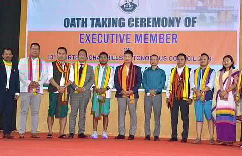 Haflong: In a solemn ceremony held at the district library auditorium, as many as eleven Members of Autonomous Council took oath of offices as the Executive Members of thirteenth N C Hills Autonomous Council on Thursday. The oath was administered by the District Commissioner in presence of Chief Executive Member Debolal Gorlosa, Chairman Mohet Hojai and others.